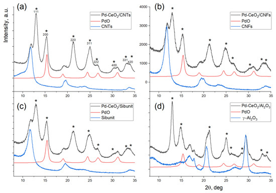 | Pd-CeO2/Sibunit | 14 | 78 | 138 | 235 |