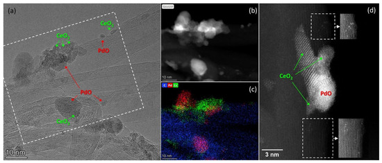 - Priolkar, K.R.; Bera, P.; Sarode, P.R.; Hegde, M.S.; Emura, S.; Kumashiro, R.; Lalla, N.P. Formation of Ce1−xPdxO2−δ Solid Solution in Combustion-Synthesized Pd/CeO2 Catalyst: XRD, XPS, and EXAFS Investigation. Chem. Mater. 2002, 14, 2120–2128. [Google Scholar] [CrossRef]