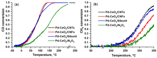 Pd-Ceria/CNMs Composites as Catalysts for CO and CH4 Oxidation