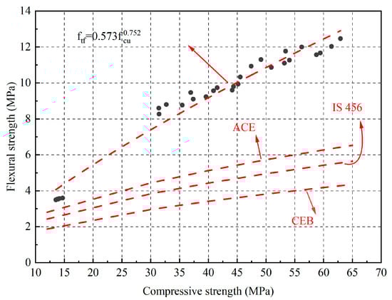 3.3. Relationship between the Compressive Strength and Flexural Strength of Mortar