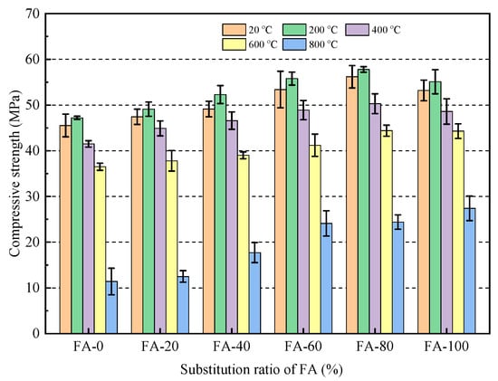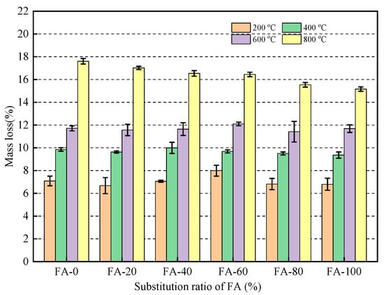 - The high-temperature test results indicated that using fly ash as a substitute for natural river sand can improve the high-temperature resistance of mortars. Mortars containing 80% fly ash as a substitute for natural river sand had a higher residual compressive strength than the other mortars. In addition, the addition of fly ash did not significantly affect the quality loss of the mortar at high temperatures.