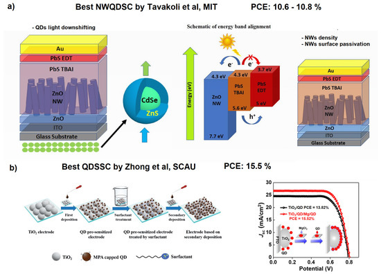 - Du, Z.; Artemyev, M.; Wang, J.; Tang, J. Performance improvement strategies for quantum dot-sensitized solar cells: A review. J. Mater. Chem. A 2019, 7, 2464–2489. [Google Scholar] [CrossRef]