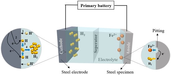 Principle of steel corrosion in an acid electrolyte.