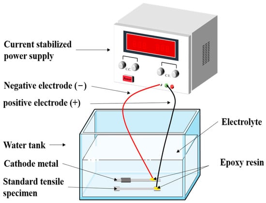 Schematic diagram of electric corrosion of steel standard tensile coupons.