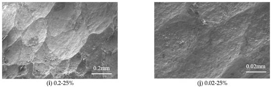 It can be seen that the size of the pits is different after sulfate corrosion, and the number, size, and distribution of the pits are random. When the corrosion rate γ ≤ 10%, the number of pits increases with the corrosion rate, and the distribution of the pits became denser which caused the pits larger and deeper. When the corrosion rate is 15% ≤ γ ≤ 25%, the corrosion pits became clear and denser, and the corrosion pits are assumed as hemispherical [].