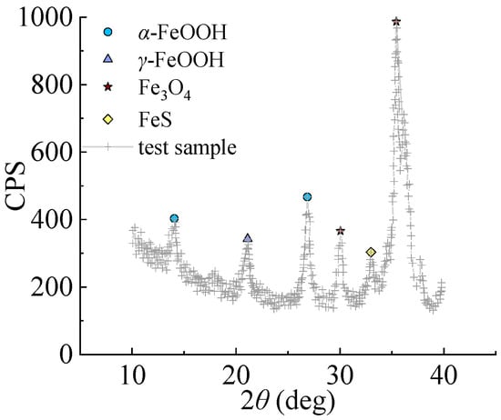 Figure 11 shows XRD of Q235 low carbon steel under sulfate corrosion. It can be seen that the final products mainly include α-FeOOH, γ-FeOOH, and Fe3O4. The total corrosion included the following process: