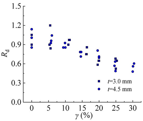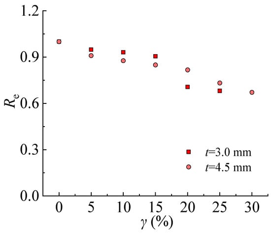 The failure patterns of the test specimen show that the thickness of the steel and corrosion rate affected the corrosion resistance. With the increase of the wall thickness of steel, the oblique fault occurs at a higher corrosion rate. With the increasing corrosion rate, the oblique fault occurs in the range of the high corrosion rate for all test specimens with thicknesses of 3.0 mm and 4.5 mm, respectively. It indicates that steel with a larger thickness would delay the influence of corrosion.