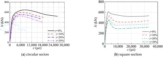Note: ts is the initial thickness of steel, mm; γ is the corrosion rate of steel, %; Es is the elastic modulus of steel, GPa; fy is the yield strength of steel, MPa; fu is the ultimate tensile strength of the steel; μs is the Poisson’s ratio of.