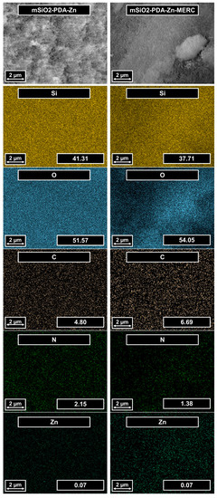 | mSiO2-PDA-Zn-MERC | 0.81 ± 0.01 | 4.53 ± 0.14 | 1.06 ± 0.11 |