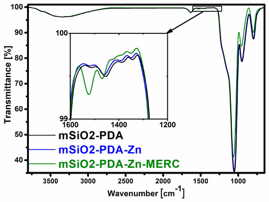 3.4. Analysis of Synthesized Materials Using the FT-IR Technique