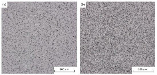 Optical micrograph of AlSi10MnMg longitudinal carrier after single-stage aging and double-stage aging at (a) 180 °C × 3 h and (b) 100 °C × 3 h + 180 °C × 3 h.