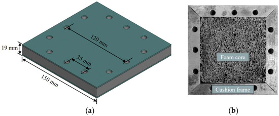 (a) Sketch of sandwich specimen; (b) Foam core and cushion frame.