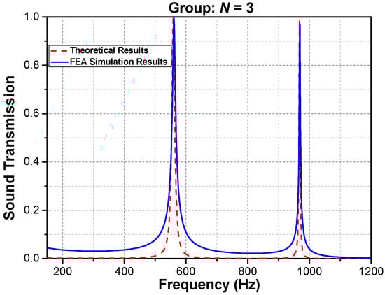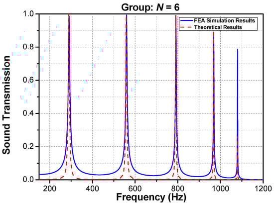 Theoretical- and FEA-simulation results of sound transmission at N = 6 without .