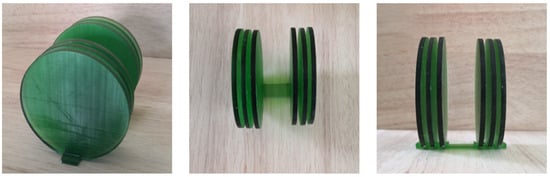 Three-dimensional-printed phononic crystal specimen ( = 15 cm and ) with positioning spacer; the thicknesses of the air layer is 0.002 m, and the thicknesses of solid material is 0.005 m.