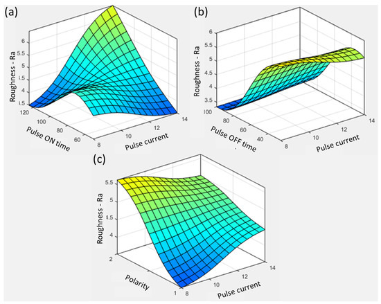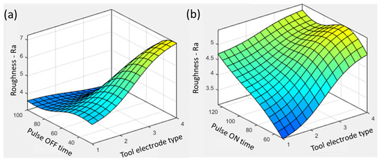 - The increase in pulse ON time from 50 µs to 125 µs for the graphite tool resulted in a roughness increase from ~4.5 µm to ~5.3 µm, showing a 17% rise. The increase in ON time enhances the energy transfer because of increased sparking time and melts more material on the surface.