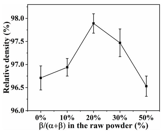 Mixtures of Si3N4 and sintering aid were used in this study. Two types of silicon nitride powders, 1# (α-Si3N4-rich powder) and 2# (β-Si3N4-rich powder) were used in the experiment. The powders had a nominal purity of over 90% and were purchased from Hebei Badu Metal Materials Co., Ltd. (Shijiazhuang, China). Nanoscale Y2O3 (purity > 99.99%), which served as the sintering aid, was purchased from Shanghai Yaoyi Alloy Materials Co., Ltd. (Shanghai, China). Al2O3 (0.2–0.4 μm, purity > 99.99%) was purchased from Hebei Yigui Welding Materials Co., Ltd. (Xingtai, China). PEG 400 (polyethylene glycol, purity > 99.99%), PAA (polyacrylic acid, purity > 99.99%), and ammonium citrate (purity > 99.99%) were purchased from Sinopharm Chemical Reagent Co., Ltd. (Shanghai, China).