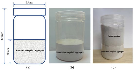 The molds used for sample preparation were colorless transparent bottles made of PET with a height of 85 mm and an aperture of 55 mm. The interior of the molds was polished to avoid gaps between mortar and molds.