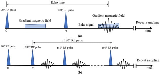 Sequences of LF-NMR measurement used in this study: (a) 1D frequency coding sequence; (b) CPMG sequence.