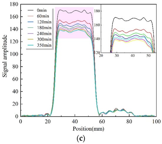 According to the testing principle of LF-NMR, there is a positive relationship between the obtained signal amplitude and the evaporable moisture content of the SRA. However, the initial signal amplitude was different for each sample due to the different amount of cement paste. In order to exclude the effect of the difference in cement paste dosage on the signal amplitude, the signal amplitude obtained for each sample was divided by the initial signal amplitude and then converted to a percentage, thus replacing the signal amplitude with the signal intensity [].