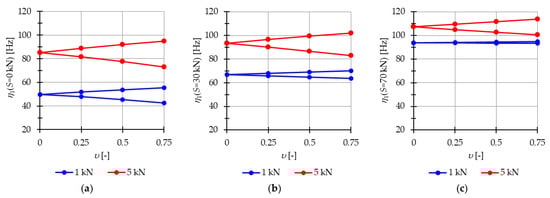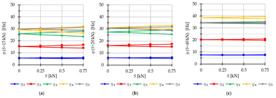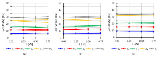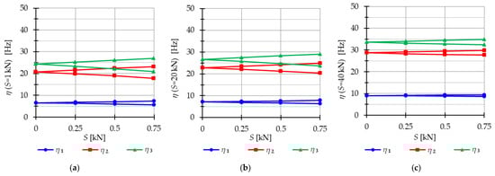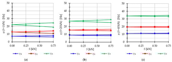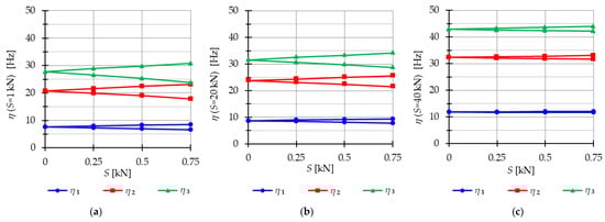 Impact of the initial prestress level S on the natural and free frequencies : (a) S3, (b) Q3-A, (c) Q3-B.