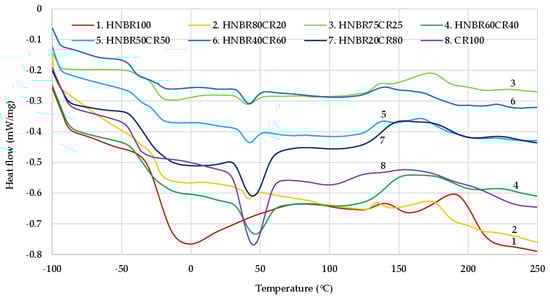 Differential scanning calorimetry (DSC) curves of HNBR/CR blends cross-linked with silver(I) oxide.