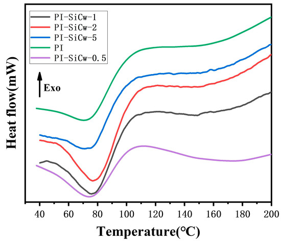 DSC curves of PI-SiCw nanocomposites of different SiCw content.