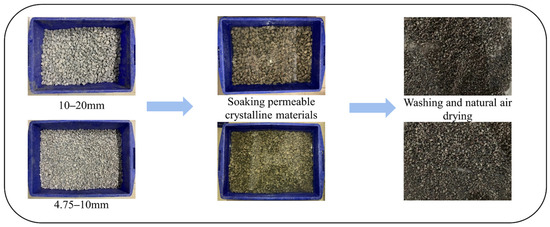 The modification process of the recycled aggregate is depicted in Figure 4.