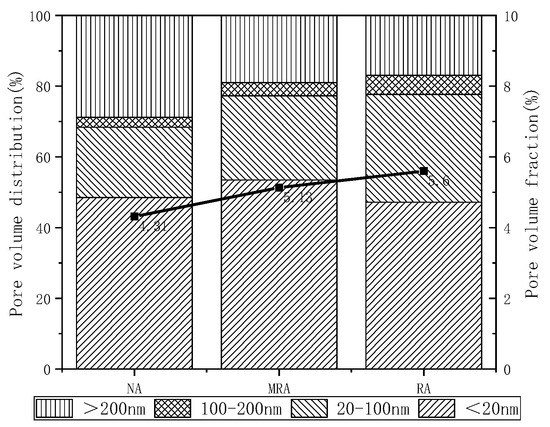 Recycled aggregate concrete pore volume distribution.