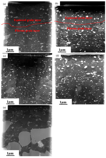 3.1. Microstructure of Near-Surface Deformed Layer on Hot Rolled AA7050 Aluminum Alloy
