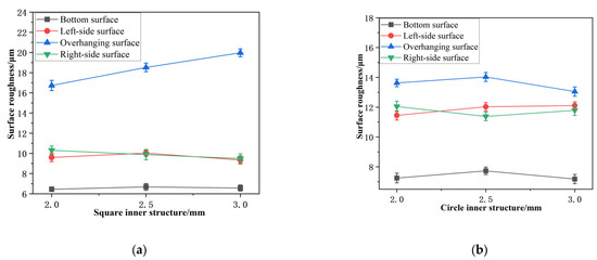 Variation of surface roughness of inner structure: (a) parallelepipedic-shaped structure and (b) cylindrical-shaped structure.