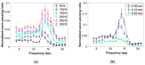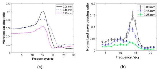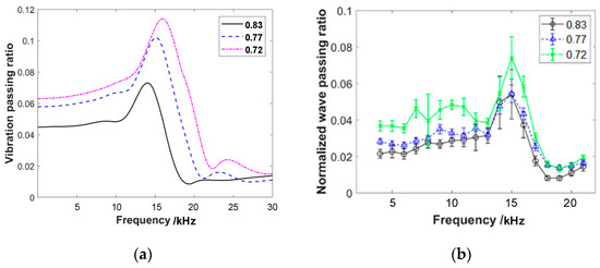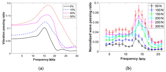 Comparison of wave passing ratio of EMWMs with different pre-compression forces: (a) simulation results and (b) experimental results.