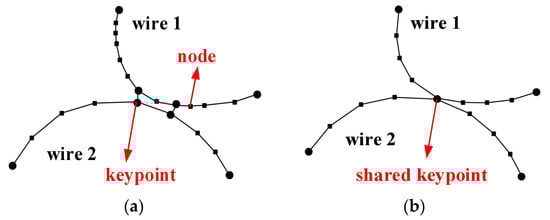 Schematic diagram of contacted wires’ modification in EMWM skeleton model: (a) before modification and (b) after modification.