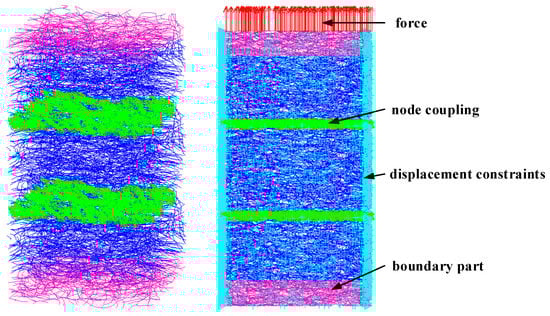where and represent the average displacement of the nodes on the upper and lower boundary of the model, respectively.