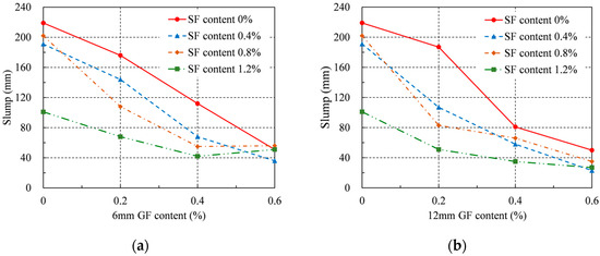 Slump: (a) 6 mm GF; (b) 12 mm GF.