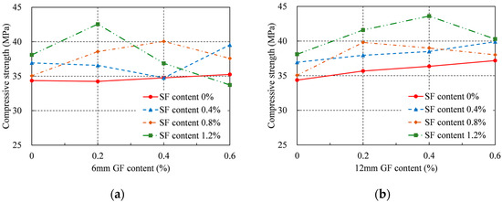 Compressive strength: (a) 6 mm GF; (b) 12 mm GF.
