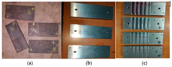 This study examines the workpiece material Custom 450 stainless steel prepared in the process of cutting and grinding, which is used to remove dust and rust on a workpiece and then obtain a glittering surface. The dimensions of 160 mm × 75 mm × 20 mm (4 numbers) were prepared as shown in Figure 1. The chemical composition and mechanical properties of Custom 450 stainless steel are shown in Table 1 and Table 2. In accordance with the ASTM-E8 standard [30], the specimens (workpieces) for the tensile test were made using a wire electro-discharged machine. The determined tensile qualities included yield strength, ultimate tensile strength and elongation. A Brinell hardness test was conducted using a 5 mm ball, 750 kg/load, and three values were observed and the average was taken into account. In accordance with the ASTM B294-10 standard [31], a rock well hardness tester was used to measure the hardness. In order to measure the hardness for the HRA scale, a major load of 573.4 N was applied after a minor load of 98.07 N to establish the sample. Three measurements of the hardness were taken to determine an average.