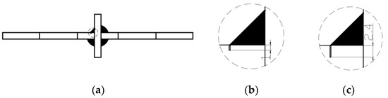 The original specimen was treated with defects, which refers to the use of wire cutting at the welding point of the cruciform welded joints to cut into a certain depth of defects. In this experiment, the crack sizes were 1 and 2.4 mm. According to the construction manual, the welding allowed incomplete penetration of 1 mm, and when the full penetration depth reached 80% of the plate thickness in ultrasonic inspection, the unmelted size was 2.4 mm. The exact location of the defect is shown in Figure 2.