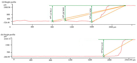 Figure 15. Confocal profile of the groove with different processing methods (a) laser; (b) laser-grinding chain.