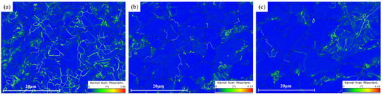 KAM diagrams at different locations: (a) surface, (b) 1/4 thickness and (c) 1/2 thickness.