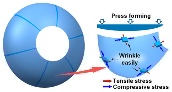 - Liu, W.; An, L.H.; Yuan, S.J. Enhancement on deformation uniformity of double curvature shell by hydroforming process and curved blank-holder surface. Int. J. Adv. Manuf. Technol. 2017, 92, 1913–1922. [Google Scholar] [CrossRef]