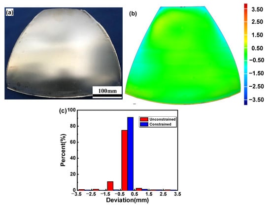 - A melon petal can be formed with high precision. The profile deviation in the desired region is between −0.5 mm and 0.5 mm. This is due to the fact that a temperature close to the solution temperature and die quenching are utilized to suppress springback and avoid thermal deformation.
