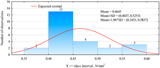 Histogram of tensile strength perpendicular to the planes of the plate (polymer cubes).