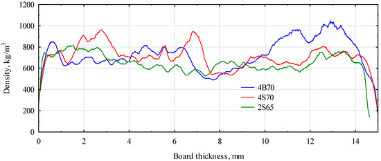 Selected density profiles for the analyzed particle–polymer boards.