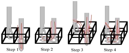 Figure 4 shows the operation steps of the braiding mechanism in detail.