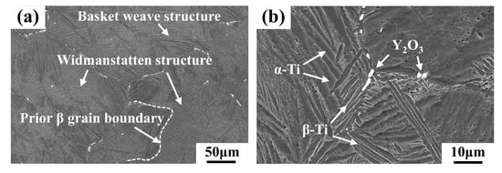 - The microstructures of the alloys are all of the widmanstätten structure, with typical basket weave features. The prior β grain size and α lamellar spacing decrease with the increase of the Y content.