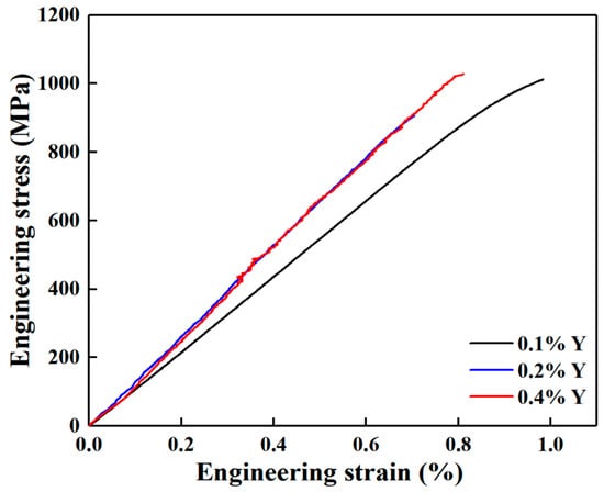 Room-temperature tensile stress–strain curves of as-cast alloys with different Y content.
