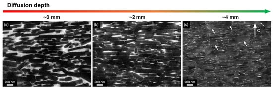 Microstructural features of the infiltrated magnets at different diffusion depths. Reproduced with permission []. Copyright 2017, Elsevier.