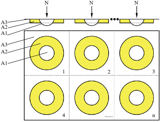 In Figure 4, the A1 part represents the micro convex body on the surface of the friction materials, the A2 part represents the frictional film formed during the friction process, and the A3 part represents a relatively concave region that is not involved in the direct friction process. The entire friction material’s surface is composed of the number (n) of regions, such as A1, A2, and A3.