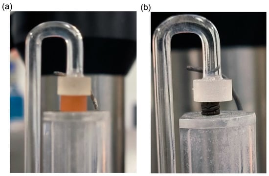 Experimental set-up of TMA tests: (a) before pyrolysis and (b) after pyrolysis.