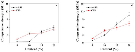 Figure 11 depicts the pore size distribution and cumulative porosity curves of AASS20 and CSS20. It can be seen from